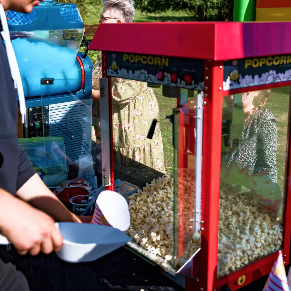 Se hvordan du bruger popcornmaskinen, gør den rent med mere. Så du kan servere sprøde varme popcorn til din fest.